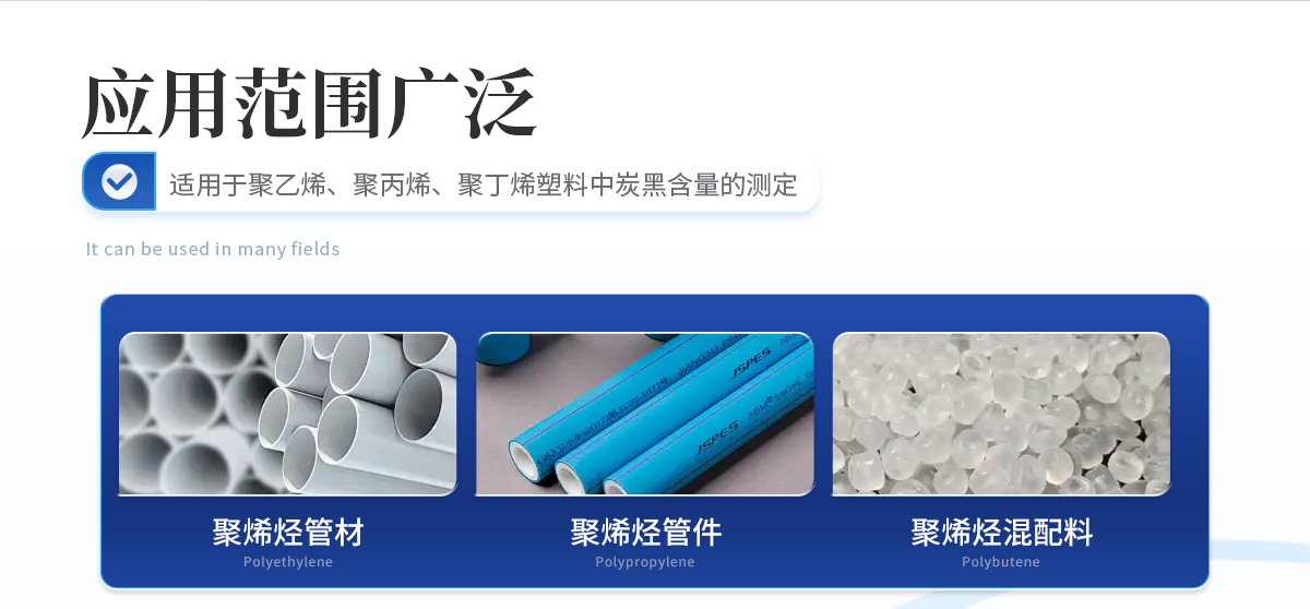 炭黑分散度检测仪根据国际标准 GB/T 18251-2000针对聚烯烃管材、管件和混配料中颜料或炭黑分散的检测仪器。该仪器适配基于软件及相应的显微镜,通过对炭黑粒团的尺度、形态、及散布情况的测量,可以建立起这些参数与力学性能、抗静电性能、吸湿性能等宏观性能指标的内在联系。对塑料材料的品质保障、生产工艺、新品研发产生积极影响,同时推进企业和行业技术水平的快速提升。