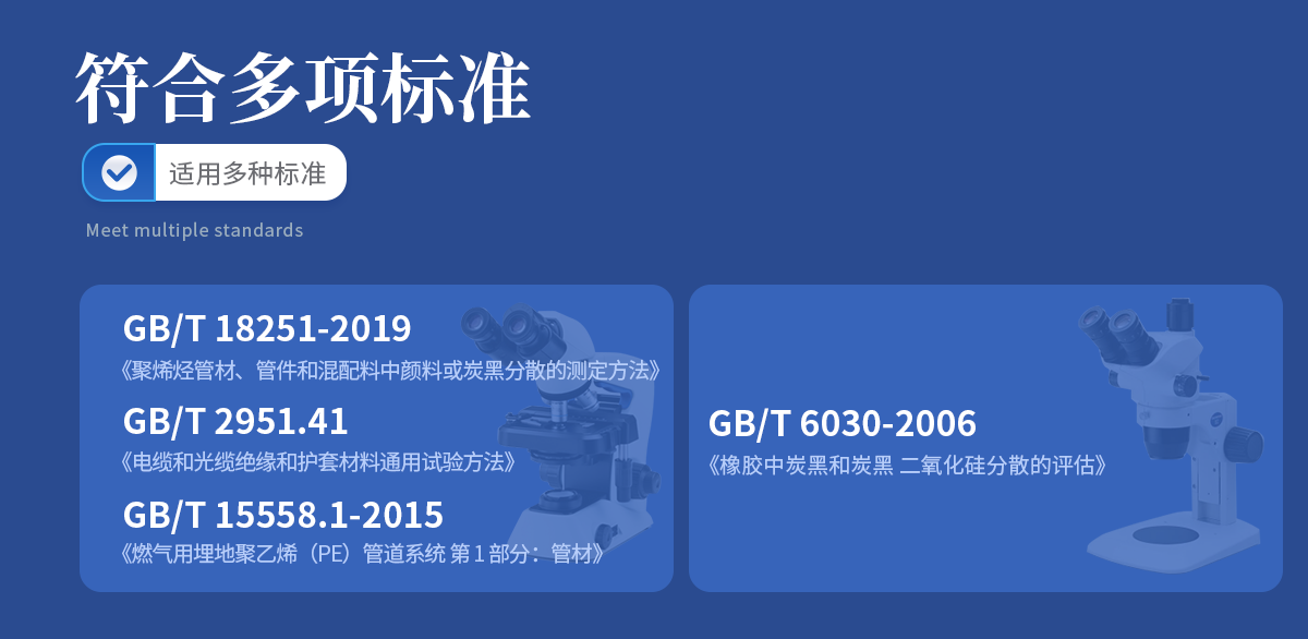 GB/T 18251-2019 聚烯烃管材、管件和混配料中颜料或炭黑分散的测定方法 | GB/T 2951.41 电缆和光缆绝缘和护套材料通用试验方法 | GB/T 15558.1-2015 燃气用埋地聚乙烯(PE)管道系统 第 1 部分:管材 |