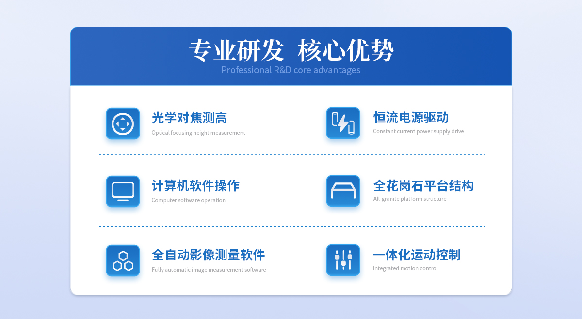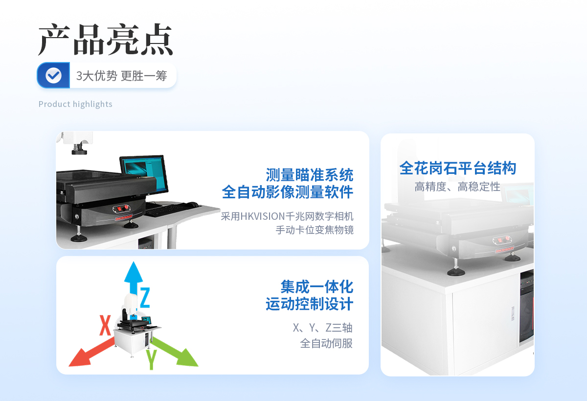 Ø 三轴均采用台湾LEPIN高精度直线导轨、精密级无牙螺杆传动,噪音低振动小,动态几何误差变形*小。 | Ø 采用优质花岗岩大理石底座、立柱、工作台,具有良好的温度稳定性、抗实效变形能力 。 | Ø 有限元结构分析及优化结构设计为该系列保证了系统整体的高精度及高稳定性。 | Ø 采用集成式多功能控制器,整体机台故障率低,售后更方便 。 | Ø 配备红点激光定位装置,方便快捷找准测量位置 。 |
