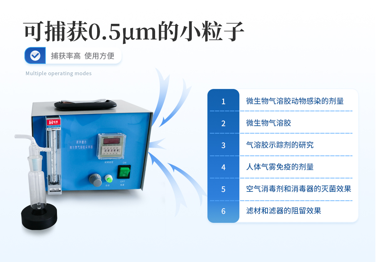 液体撞击式采样器尤其适用于实验空气微生物学中的浓度测定。常用于微生物气溶胶动物感染的剂量,微生物气溶胶存活的回收率,气溶胶示踪剂的研究,人体气雾免疫的剂量,空气消毒剂和消毒器的灭菌效果,滤材和滤器的阻留效果等实验中的气溶胶采样。