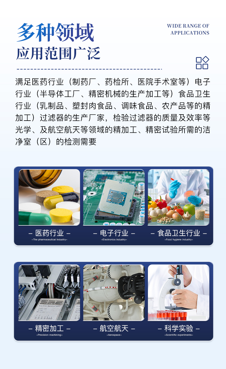 | ◆ 手持尘埃粒子计数器是一种便携式的检测设备,专门用于快速测量空气中的尘埃、颗粒物以及其他微小颗粒的数量和大小分布。这类仪器广泛应用于多个行业,包括但不限于制药、半导体制造、医院、无尘车间、空气净化器效果验证等领域。 |