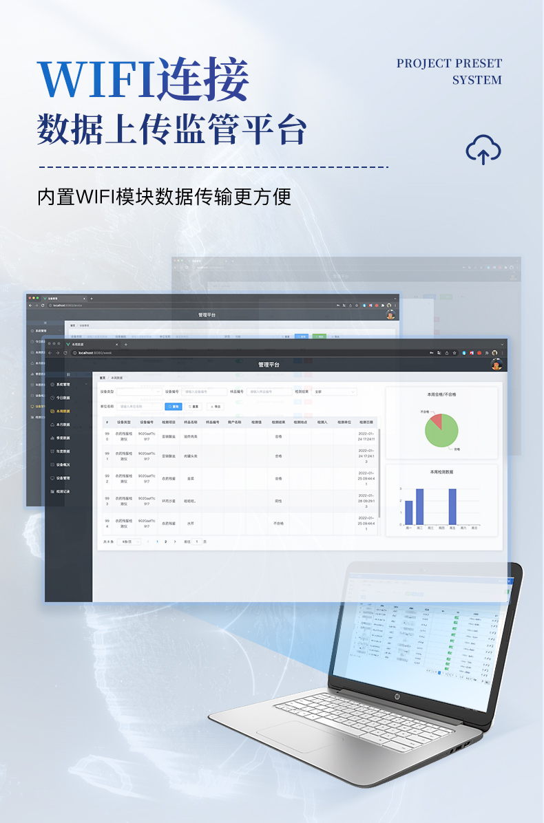 | 仪器采用手提式一体化系统检测技术,将分光光度模块、新型农残检测模块、数字化管理模块、无线通讯模块高度集成于一体,支持检测200种食品安全检测项目,同时预留升级检测方法。 | 仪器检测模块标准化、智能化,检测项目可随意自由组合。检测箱体内置多个标准检测单元,检测模块可以调整配置。 | 显示屏幕:仪器采用10.1英寸竖向液晶触摸屏显,搭配运行安卓智能操作系统,主控芯片采用ARM Cortex-A7,RK3288/4核处理器,主频1.88Ghz,操作方便,性能更强。 | 检测通道:≥12通道;采用精密旋转比色池设计,使用同芯片同光源校准精度,解决不同光源之间的误差值,更加准确**。(1-12通道间误差0.1%,***:**202022821055.2) | 仪器光源:高精度进口四波长冷光源,每个通道均配置 410、520、590、630nm 波长光源,标配**的光路切换装置,专利光路切换功能可实现64波长,并且所有检测项目可实现所有通道同时检测。 | 设备可一键校准,自动保存校准数据,自动对比校验,得到精准光源,采用Android SP存储数据,光源数据永不丢失,方便每一次使用。 | 通讯接口:配备无线通信模块、4G(APN)通讯模块、蓝牙传输,同时具有双USB接口以及RJ45网线接口,可以多方式实现数据保存及数据传输 | 存储方式:支持U盘存储,标准USB接口,免驱动安装。检测结果存储容量20万条以上,可生成Excel表格进行拷贝,并具有登录保护功能。 | 智能化操作系统: | 1)操作系统:仪器可在同一检测界面自动对应相关检测通道,一次性选择1-12个样品名称,无需退出界面,节省操作时间。并可以对每个通道属性和样品信息单独进行编辑,例如送检单位、人员,检测人员等,打印时勾选打印显示。 | 2)数据集成系统:设备首页自动汇总分析检测数据,包含:周检测数据、月检测数据,全部检测总数量,均包含检测总数,合格数,不合格数,以及相关柱形分析图,各项检测数据一目了然,无需电脑查询,更加快捷直观。 | 3)数据库系统:十几项数据库分类管理仪器:包含项目类型、项目数据、检测数据、历史记录、国标信息、曲线信息、采样信息、检测信息、受检信息、复核信息、图表信息、光源校准信息、打印样式信息、样品库信息等等,数据库之间互相协调联动保证数据的真实完整性。同时产品数据库以及历史检测记录支持一键检索功能。 | 4)限量规判系统:具有限量查询、添加物质合规判定系统。检测出结果后,系统自动调用系统数据库中相关国标进行比对判定,客观显示判定结果是否合格。 | 5)项目预设系统:仪器具有任务预设模块,一键提前预设,给出方便快捷的新检测方案,每一个任务分别可以设置不同的样品、批次、编号、来源、备注、抽样信息、检测信息、受检信息、复核信息等更多信息。样品送检时一键调取保存信息,并可多次调取,大大提高检测效率。 | 6)数据监管系统:同步对接监管平台,数据可局域网和互联网数据上传,检测结果可选择直接传至食品安全监管平台。进行区域食品安全监管及大数据分析处理与数据统计,检测区域食品安全长短期动态,达到食品安全问题预估、预警。 | 7)打印系统:内置全新打印机,新创自定义打印方式,可按需灵活勾选控制:产品合格证(国家农业部标准要求),二维码,抽样信息、检测信息,受检信息、复核信息、抽样日期、检测日期等信息的打印。 | 供电模式:仪器交直流两用,直流12V供电,可连接车载电源,可配6ah大容量充电锂电池,电量可实时显示,方便户外流动测试。 | 胶体金检测模块:采用双通道CMOS成像处理技术及胶体金免疫层析技术,可同时读取双胶体金卡数据,自动采集、处理分析,将检测结果显示,并可根据参考限值自动判断检测结果,可检测常见的兽药残留、生物毒素、抗生素、违禁添加物等。 | 1)探测技术:CMOS成像探测; | 2)检测通道:1个通道; | 3)检测方式:消线法和比色法; | 4)显示模式:阴性或阳性; | 5)曲线形式:轨道式扫描方式,显示金标卡图像,实时生成、识别CT曲线图,无需手动调整,完成检测后自动退出检测卡。兼容市场上其他金标卡,使用耗材不受限制。 | 仪器加入远程升级功能,可定向分客户分仪器更新,开机后自动更新,客户无需任何操作,即可升级全新项目。做到了无需退换机器即可实现实时远程升级检测仪器。 |